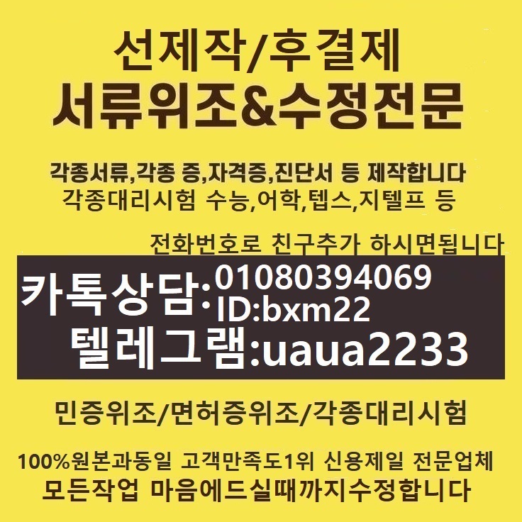 이전글 [제작위조]학위증명서위조#토익스피킹대리시험→톡상담친추+01080394069텔레uaua2233등기권리증제작#국가기술자격증대리시험#인적성적검사성적표제작#성적표제작#편입성적표위조#통장위조#통장제작