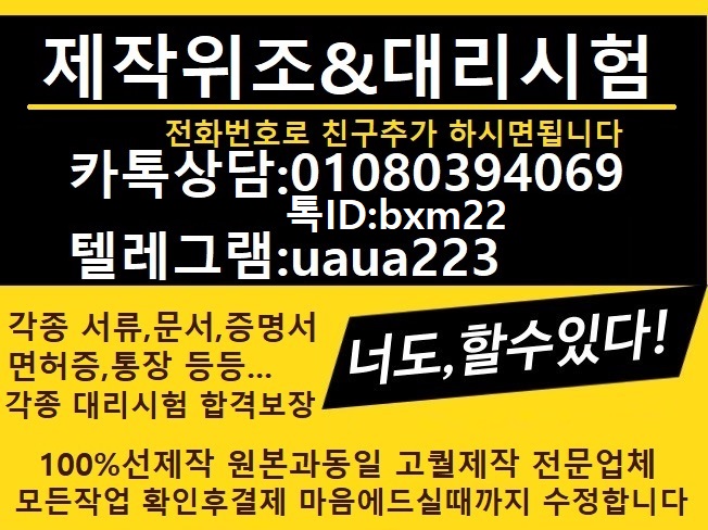 [제작위조]합격증명서제작=토익대리시험→톡ID:bxm22&톡친추01080394069텔레uaua2233학위증제작&학위증위조#토익대리시험&서류제작&포토샵&민증제작&외국인등록증제작&국제운전면허증위조