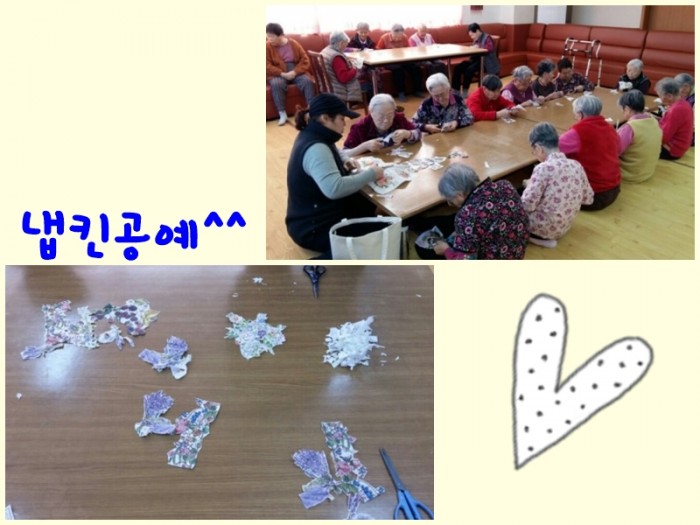오늘은 냅킨 공예를 했는데, 아직 완성품이 나오지는 않았지만~