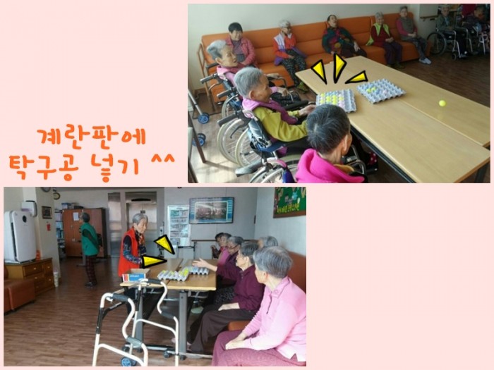 하나씩 계란판이 채워지며 탁구공이 들어갈 때마다~기뻐하는 어르신들^^