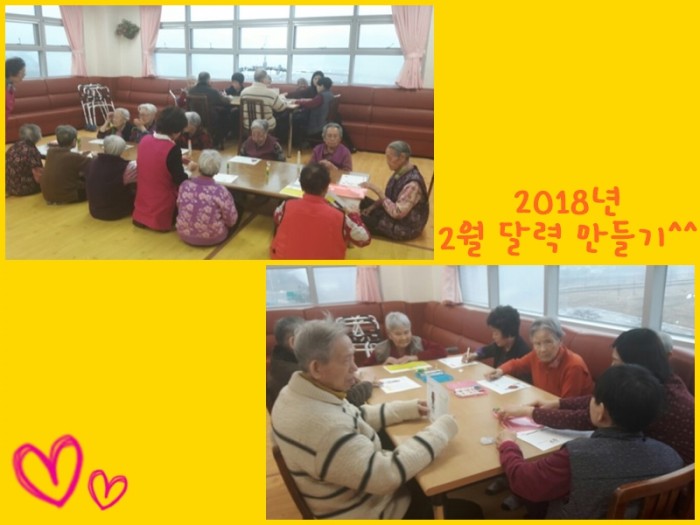 어르신 모두 열심히 2월 달력을 만드며