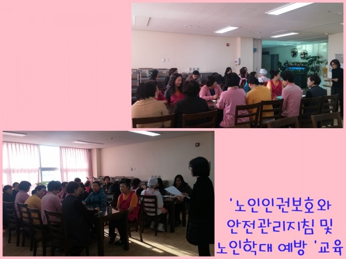 '노인인권보호와 안전관리지침 및 노인학대 예방' 교육이 있었습니다.