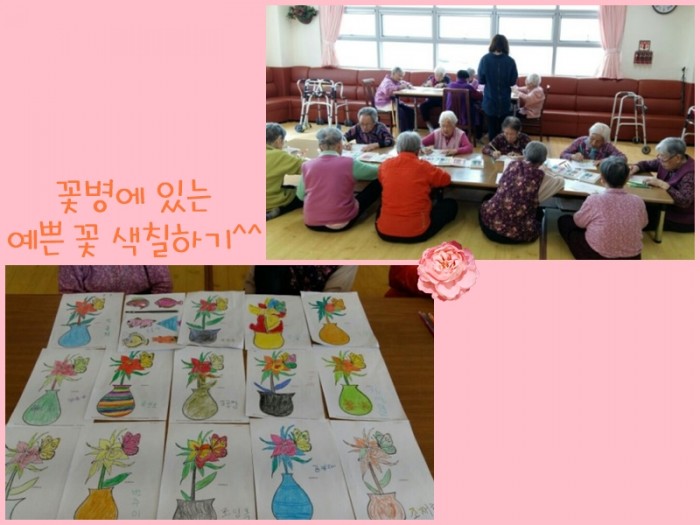 오늘은 꽃병에 있는 꽃을 색칠해보며