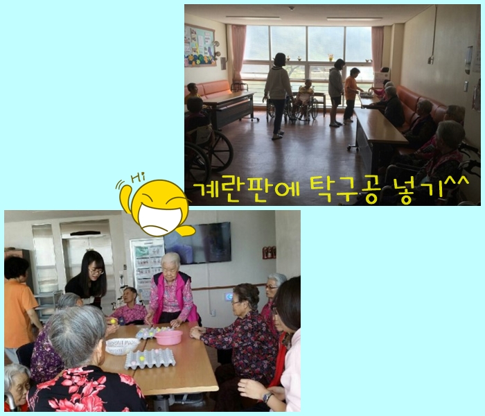 오늘은 계란판에 탁구공 넣기를 했어요.