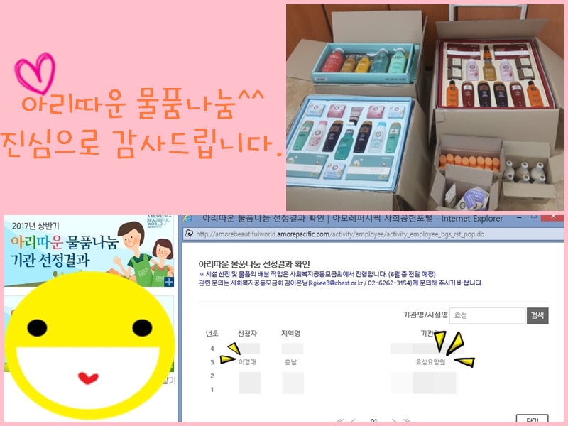 2017년 상반기 아리따운 물품나눔 에 선정되었습니다. ^^