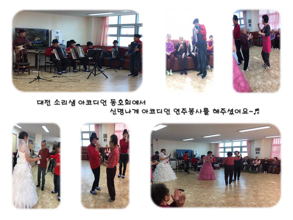 대전 소리샘 아코디언 동호회 회원분들께서 효성 어르신들을 위해 연주봉사하러 오셨어요.
