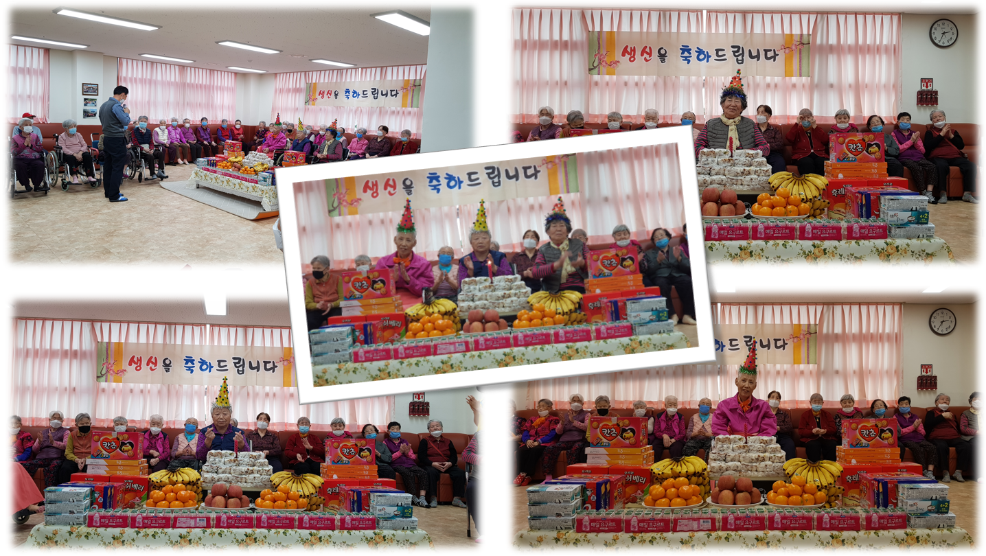 * 날 짜 : 2020년 11월 18일 수요일 * 장 소 : 4층 프로그램실 * 생신자 : 성월식, 김옥남, 정화자, 하동례 어르신 어르신들 생신축하드립니다. 언제나 건강하시고 우리와 행복하게 잘 지내세요~^^