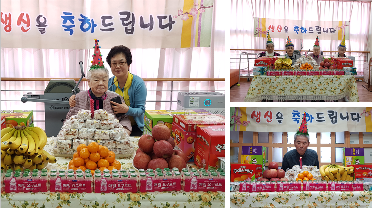 코로나19로 인하여 요양원어르신들과 주간보호 어르신들을 따로 생신잔치를 해 드렸습니다.