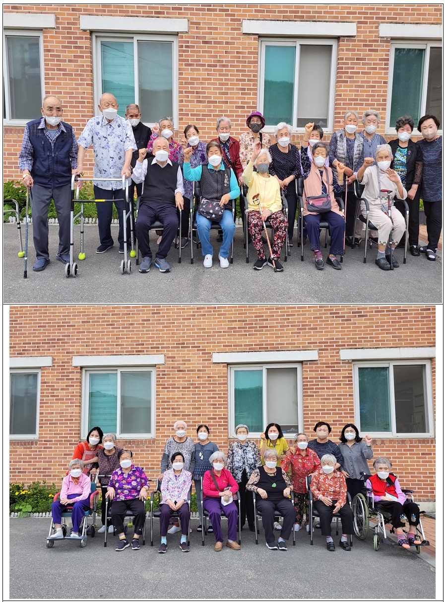 오랜만에 밖으로 나오신 어르신들과 단체 사진도 찍어보고