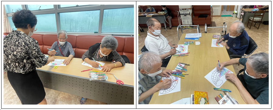 한칸한칸 꼼꼼하게 색칠해 나가는 어르신들의 모습을 보며