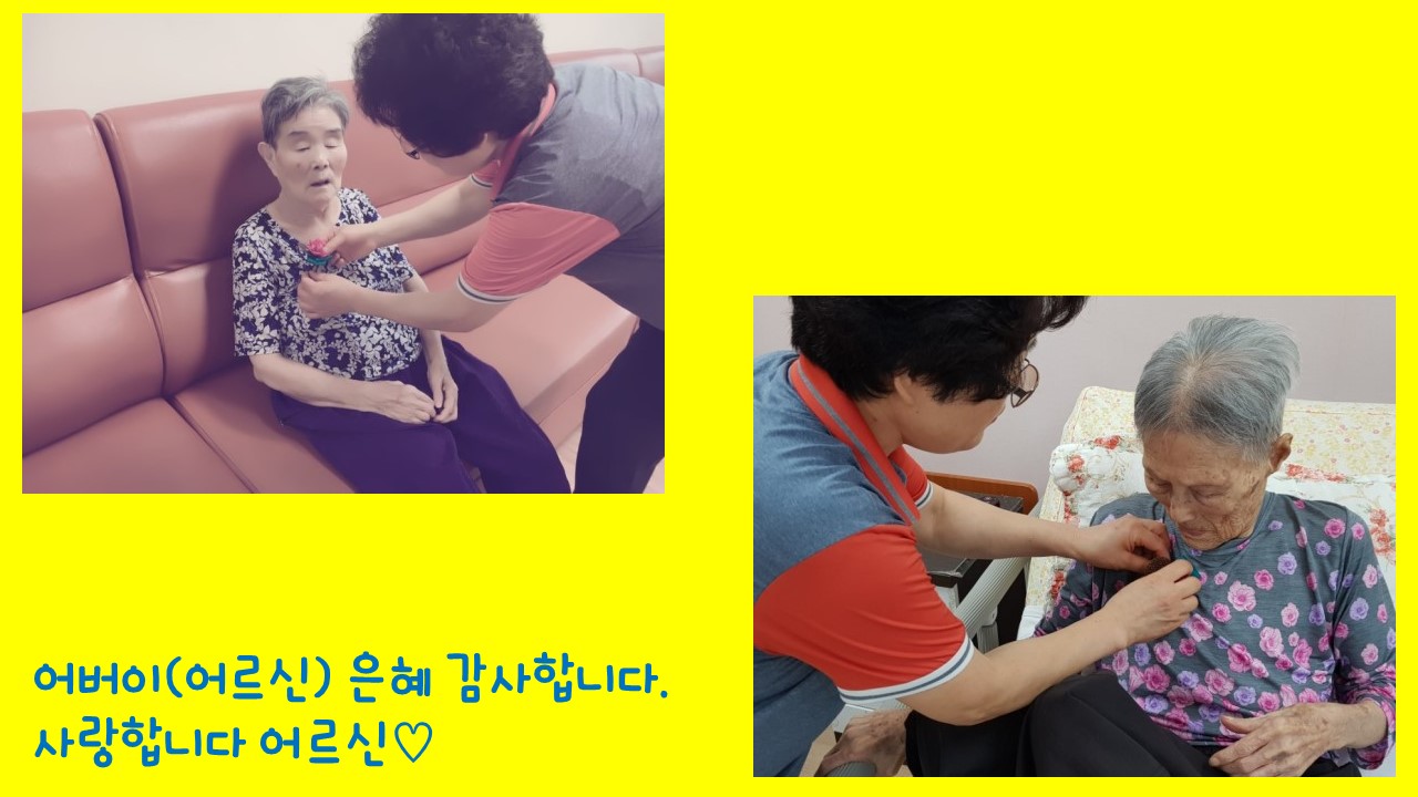 어버이날을 맞아, 어르신께 카네이션을 달아드렸습니다.