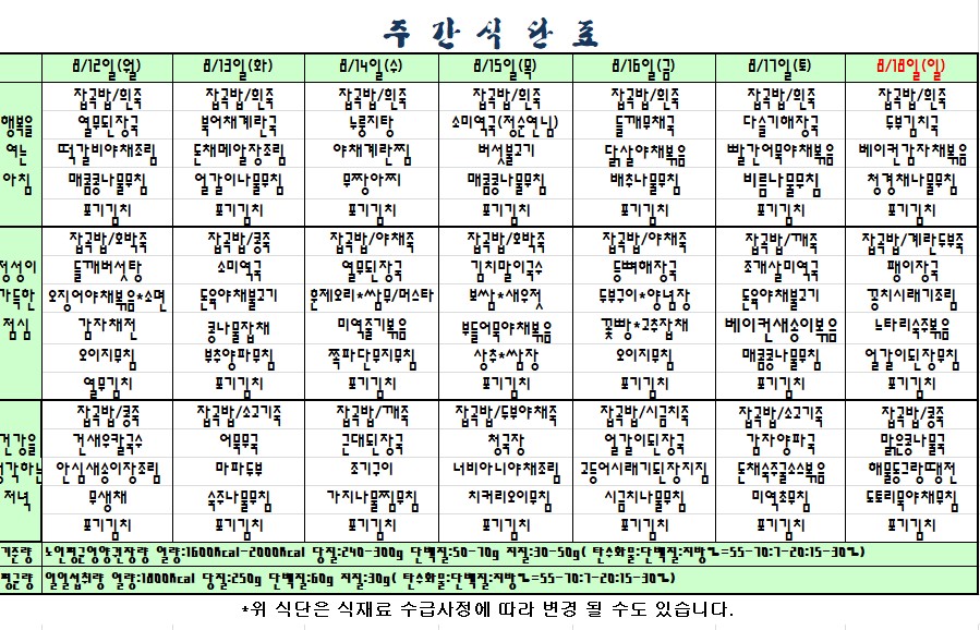 | 2019.08.12~08.18 주간식단표 관리자2019-08-09조회수 3568 |