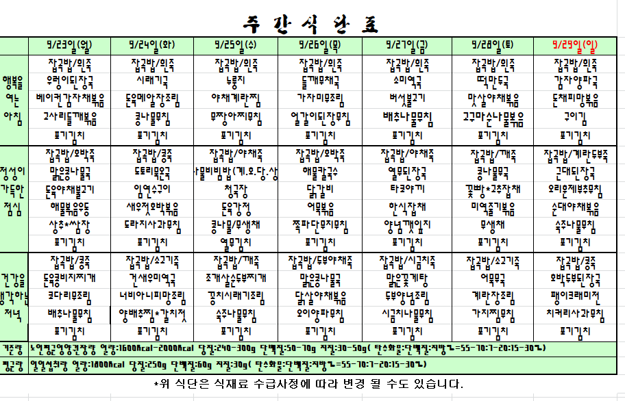 | 2019.09.23~09.29 주간식단표 관리자2019-09-20조회수 3557 |