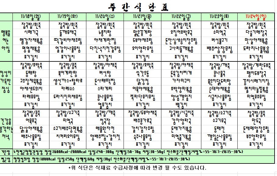 | 다음글 | 2019.11.11~11.17 주간식단표 |
