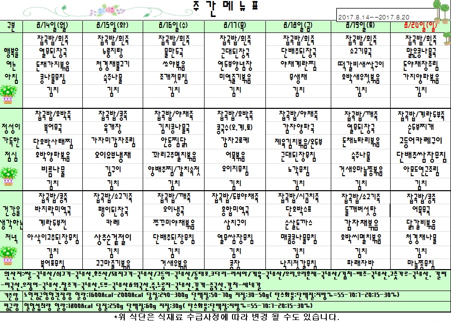 | 다음글 | 2017년 8월 7일 ~ 8월 13일 식단표 |