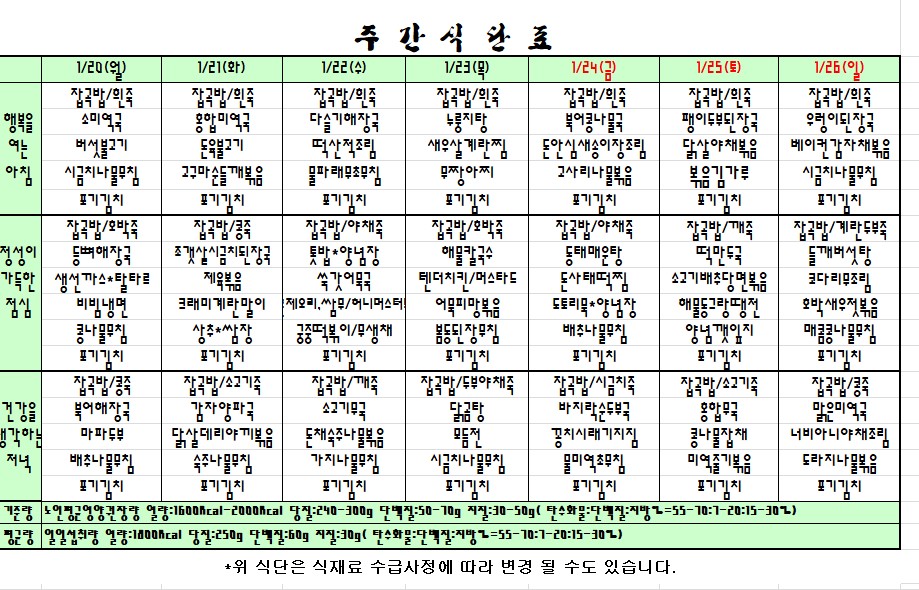 | 2020.01.20~01.26 주간식단표 관리자2020-01-17조회수 3593 |