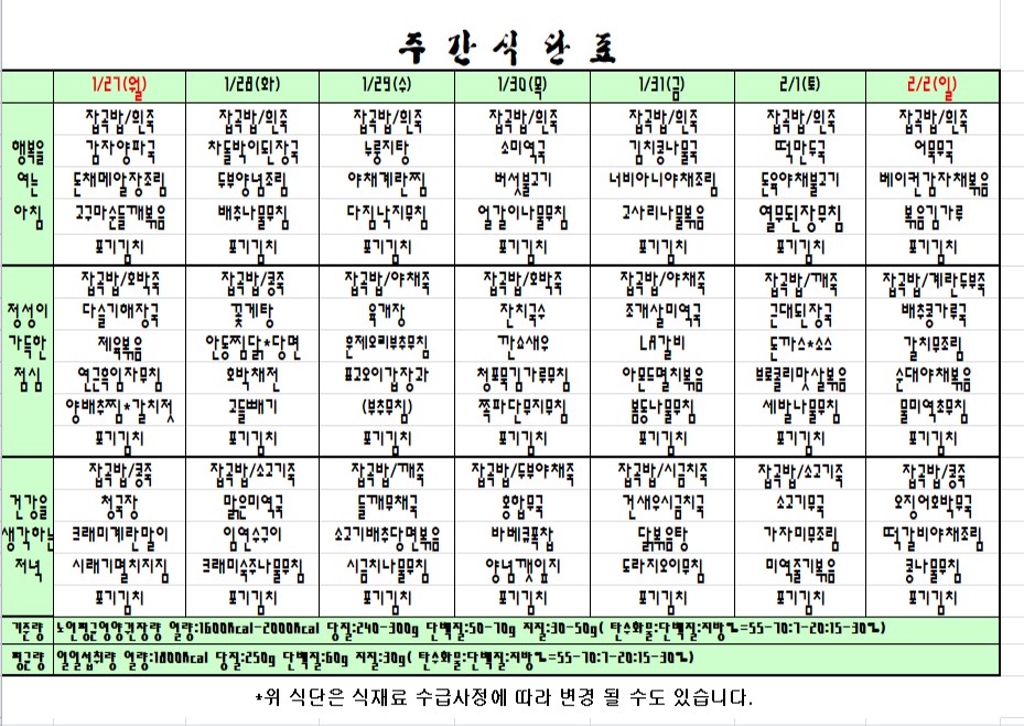 | 다음글 | 2020.01.20~01.26 주간식단표 |