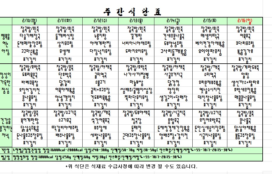 | 2020.02.10~02.16 주간식단표 관리자2020-02-07조회수 3546 |