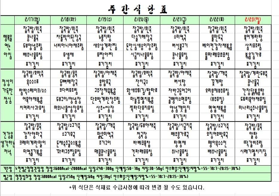 | 다음글 | 2020.02.10~02.16 주간식단표 |