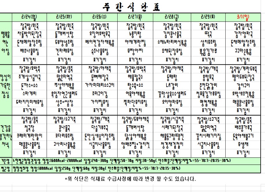 | 이전글 | 2020.03.02~03.08 주간식단표 |