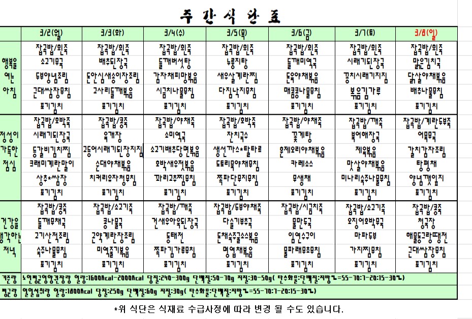 | 2020.03.02~03.08 주간식단표 관리자2020-03-06조회수 3699 |