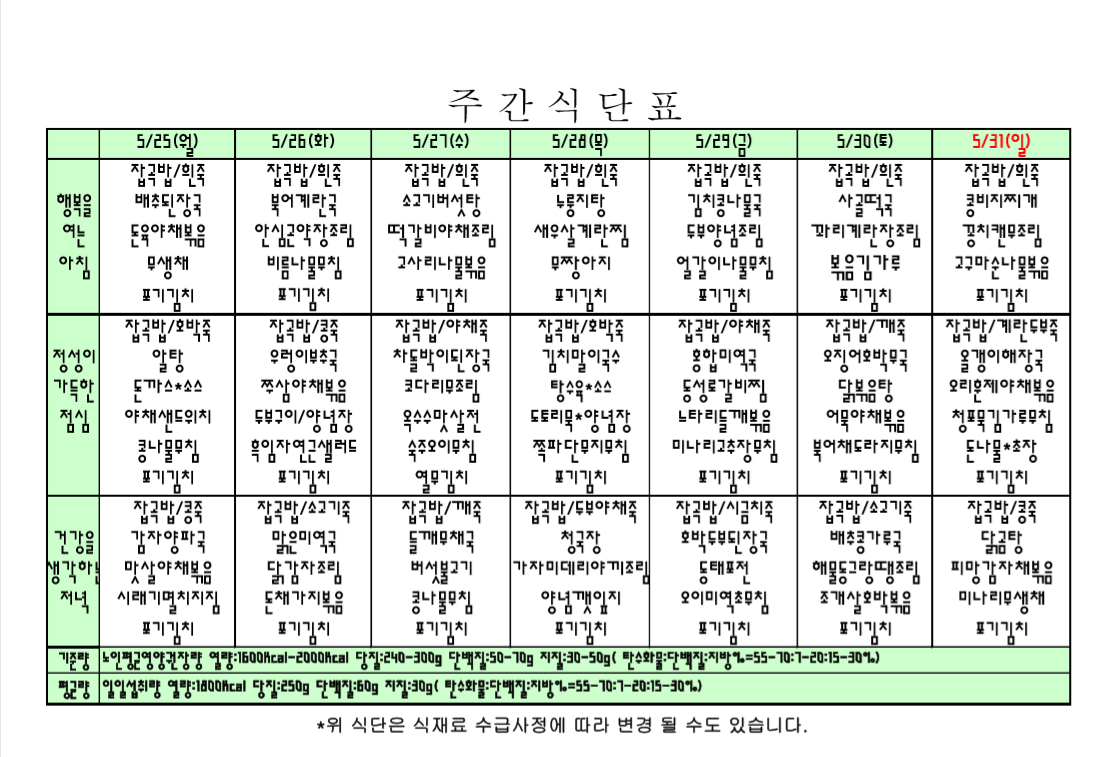 | 다음글 | 2020.05.18-05.24 주간식단표 |
