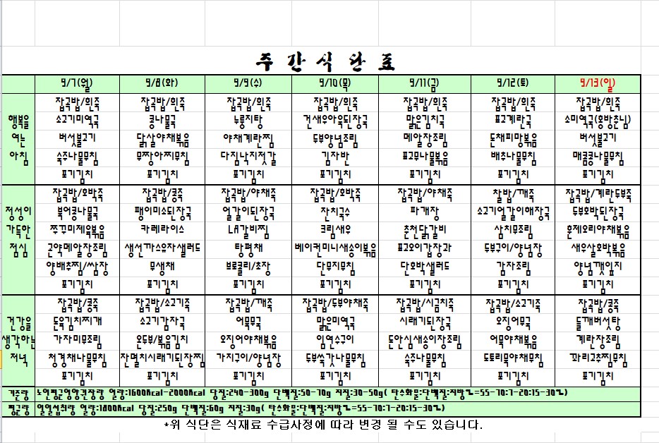 | 이전글 | 2020. 09. 14 ~ 09. 20. 주간식단표 |