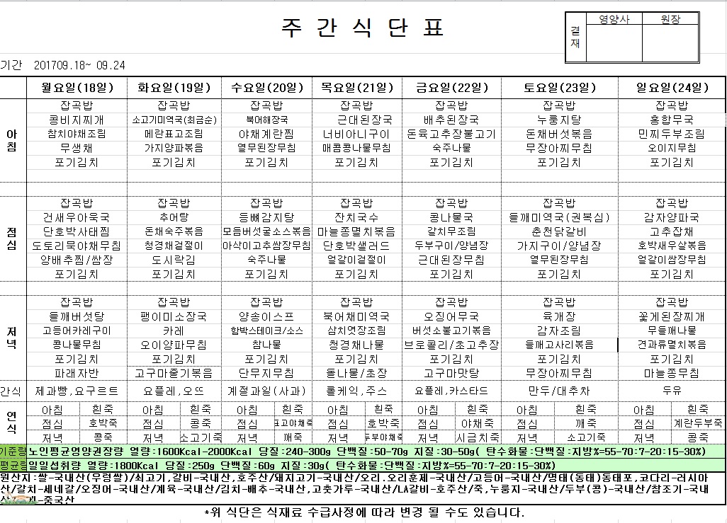 | 2017년 9월 18일 ~ 9월 24일 식단표 관리자2017-09-18조회수 3514 |