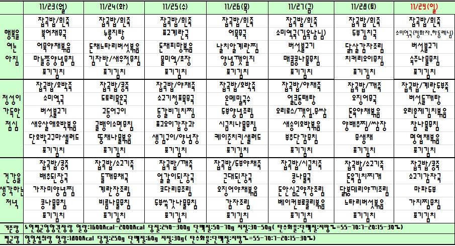 20.11.23~29 주간식단표 입니다.