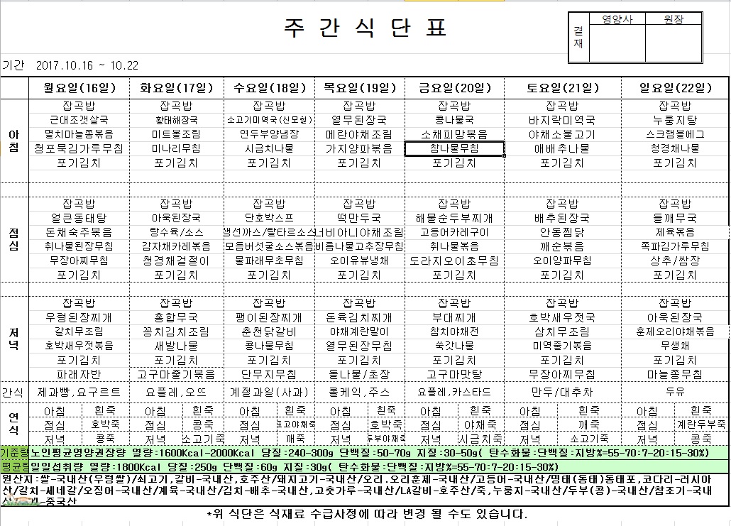 | 2017년 10월 16일 ~ 22일 식단표 관리자2017-10-16조회수 3582 |