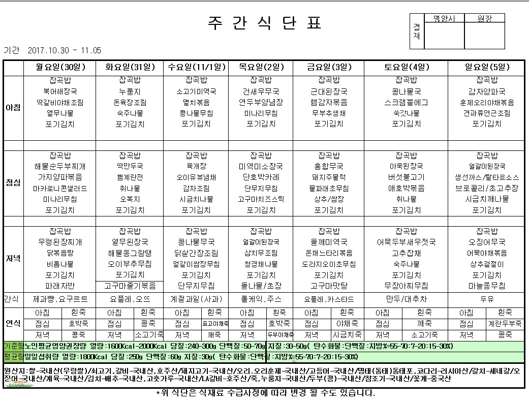| 2017년 10월 30일 ~ 11월 5일 식단표 관리자2017-10-31조회수 3508 |