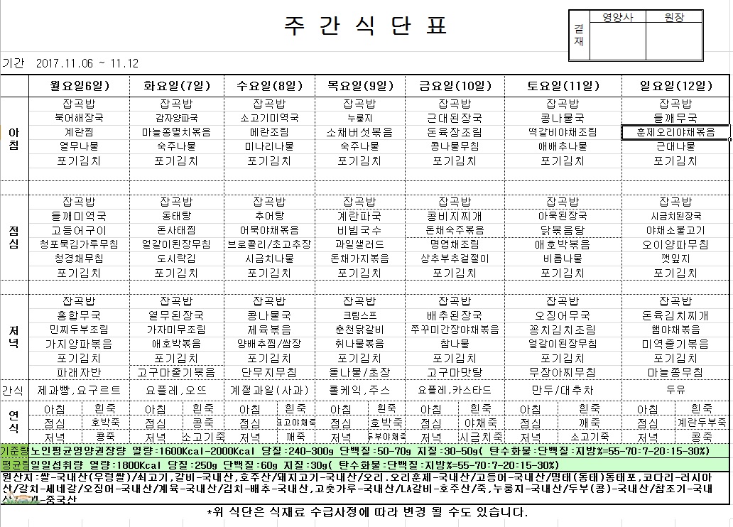 | 2017년 11월 6일 ~ 12일 식단표 관리자2017-11-06조회수 3662 |