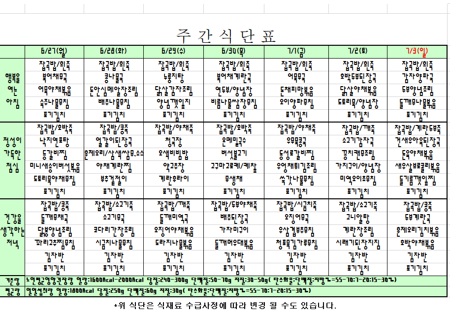 2022. 06. 27 ~ 07. 03 주간식단표