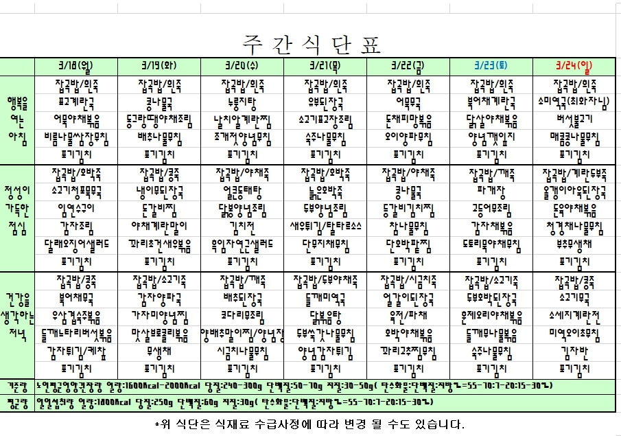 | 이전글 | 2024. 3. 25 ~ 3. 31 주간식단표 |