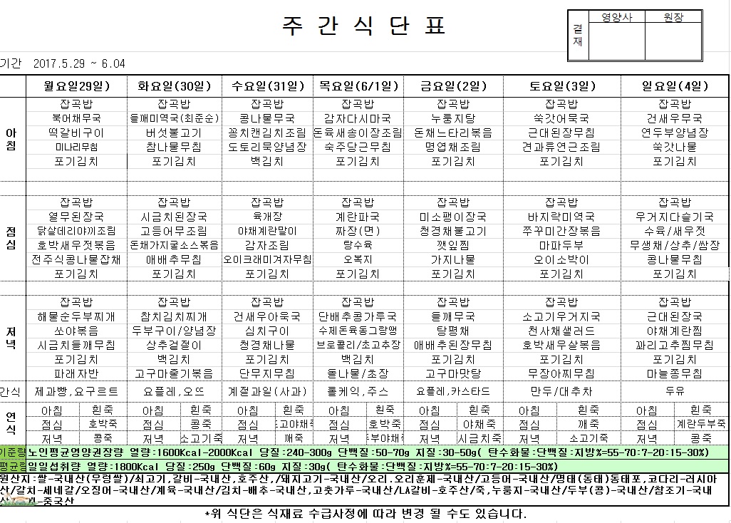 | 2017년 5월 29일 ~ 6월 4일 식단표 관리자2017-05-30조회수 3492 |