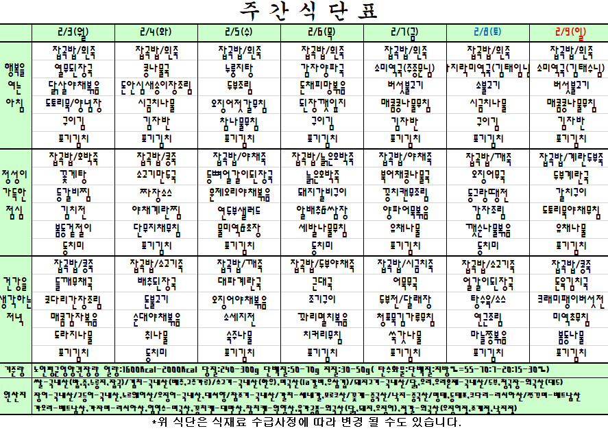 첨부파일 첨부 주간식단표 2.3~2.9.png [File Size:49.3 KB/Download:11]