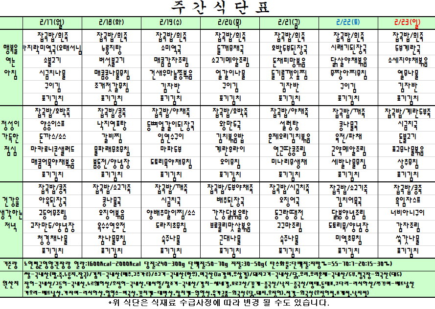 첨부파일 첨부 주간식단표 2.17~2.23.png [File Size:49.1 KB/Download:11]