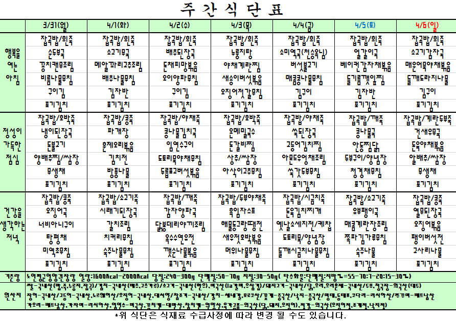 첨부파일 첨부 주간식단표 3.31~4.6.png [File Size:50.0 KB/Download:10]