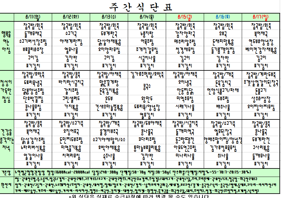 첨부파일 첨부 주간식단표8.11~8.17.png [File Size:50.3 KB/Download:5]