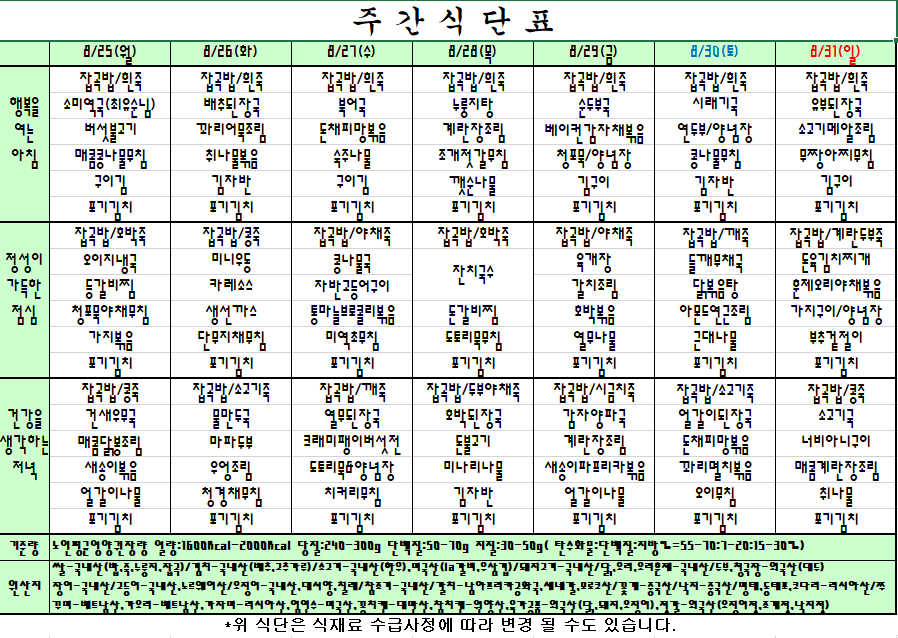 | 2025.8.25~8.31 주간식단표 관리자2025-08-20조회수 654 |