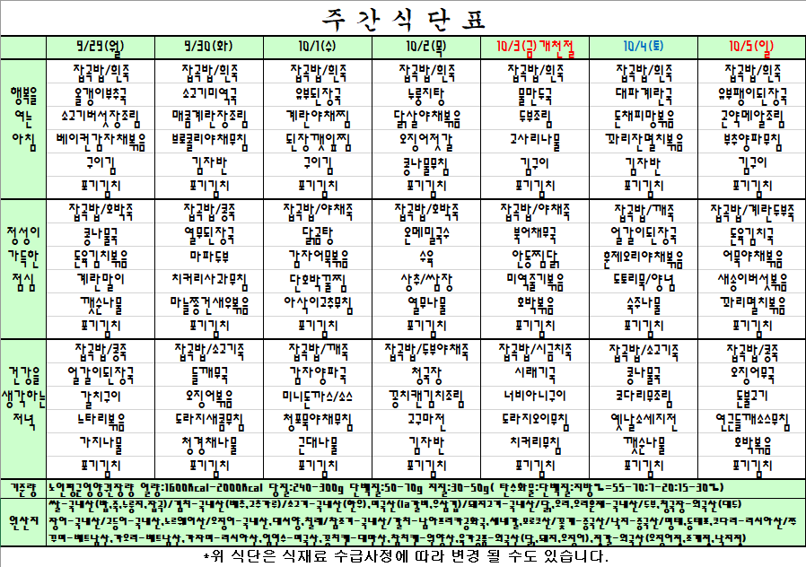 | 25.9.29~25.10.5 주간식단표 관리자2025-09-25조회수 537 |