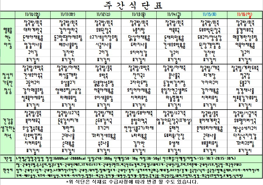 | 다음글 | 25.11.3~25.11.9 주간식단표 |