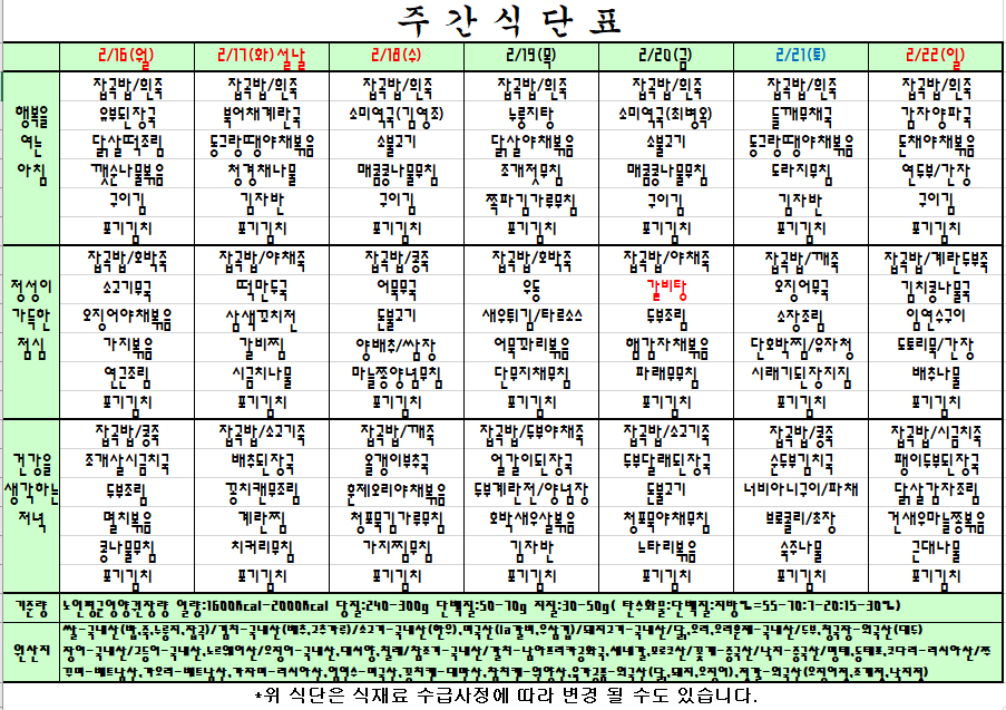 | 26.2.16~26.2.22주간식단표 관리자2026-02-11조회수 185 |