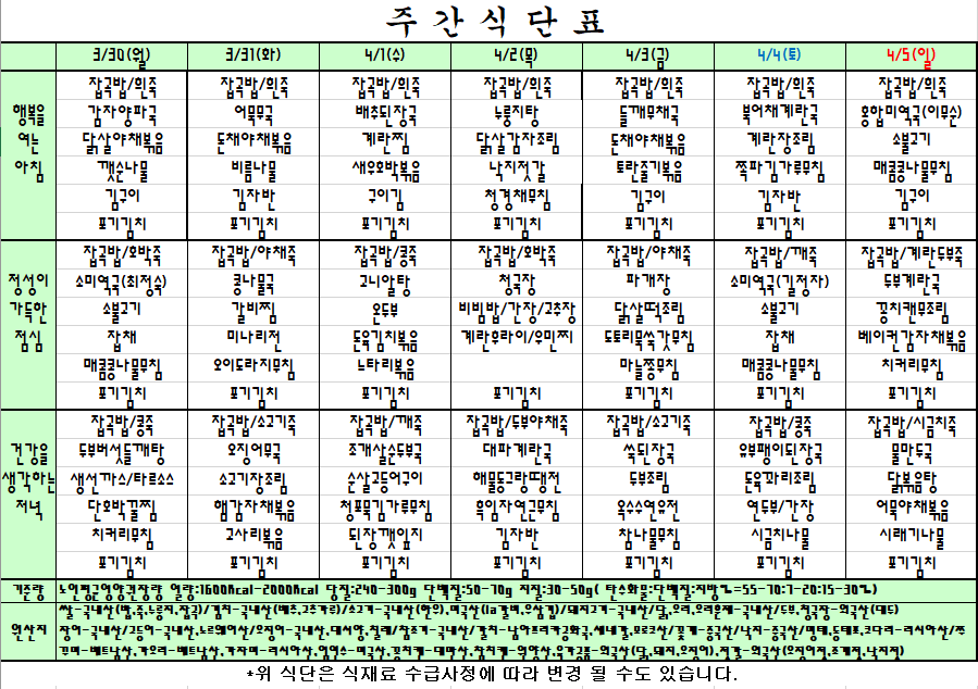 주간식단표 |