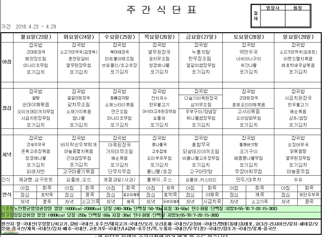 | 2018.04.23.~04.29. 식단표 관리자2018-04-23조회수 3720 |