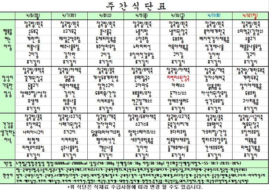 주간식단표 |
