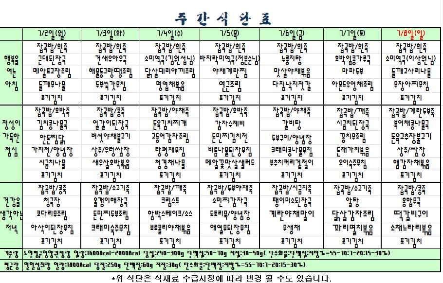 | 2018.07.02~07.08. 식단표 관리자2018-07-02조회수 3492 |