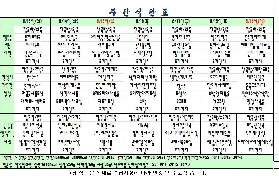 2018.08.13~08.19. 식단표 |
