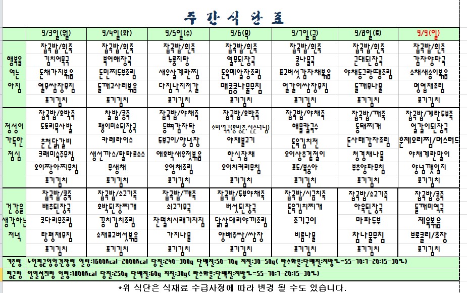 2018.09.03.~09.09.식단표 |