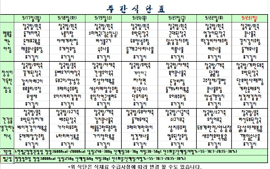 2018.09.17.~09.23.식단표. |